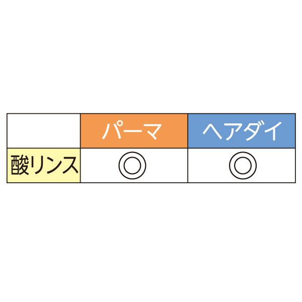 アルカリに傾いた髪を弱酸性に戻します。酸性カラーやブライトアップ施術時に使用すると色つやの定着を良くします。(健康毛〜損傷毛)