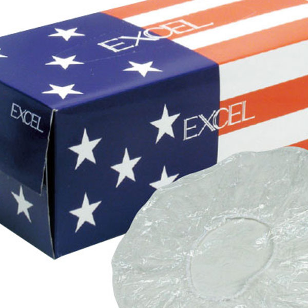 スタンダードな透明、使い捨てタイプのヘアキャップ。コールドパーマにはもちろんカラーリング、トリートメント、はてはシャワーキャップとしても。透明ポリエチレン使用。