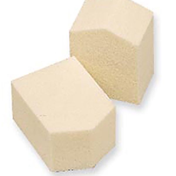 目尻や口元など細かい部分にも手が届く使用の五角形型スポンジ。