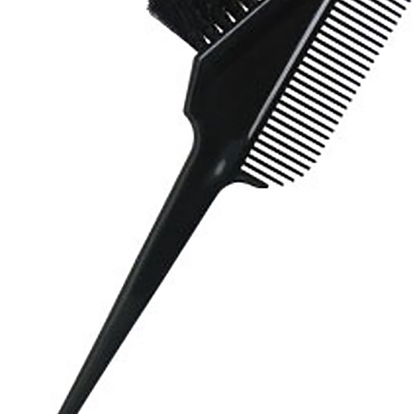 コーム部は毛の通りがよく薬液のすき落としがない中荒刃を使用。ブラシは液ダレを防止するため両サイドをカットした台形型のヘアダイコームブラシ。