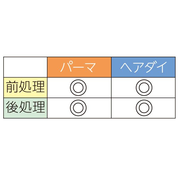使用方法:前処理の場合・・・原液か希釈したもの(原液〜3倍)を毛髪に塗布。