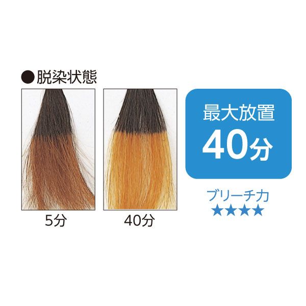 使用方法:本品とスーペロキサイド6%を1:2の割合でよく混合した後、クリーミィーなホイップ状になるまでかき混ぜてからブラシで塗布。約5分〜40分放置し、髪の毛が希望の明るさになったらすぐに洗い流す。