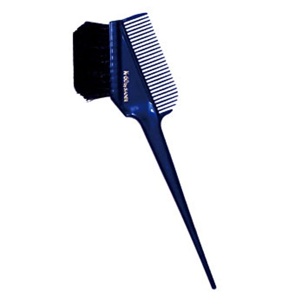超ロングセラーのヘアダイコームブラシ。コーム部は毛の通りがよく薬液のすき落としがない中荒刃を使用。ブラシは液ダレを防止するため両サイドをカットした台形型。