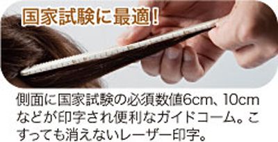 ラフカットに最適な丸歯タイプ。ロングサイズ(粗歯)。側面に国家試験の必須数値6cm、10cmなどが印字され便利なガイドコーム。こすっても消えないレーザー印字。