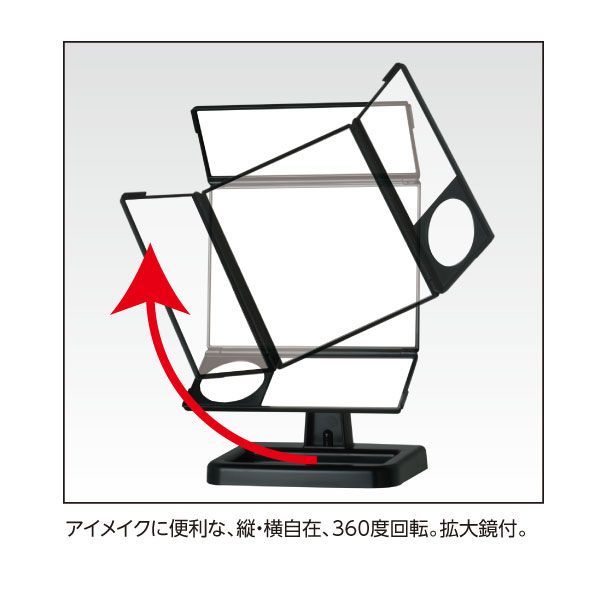 縦に、横に、360度回転するからとっても便利。拡大鏡も付いていてアイメイクに最適。
