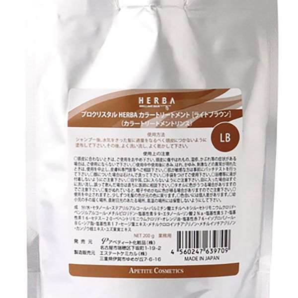 ジアミン色素不使用。ハーブエキス配合で、毛髪への負担が少なく、パサつく髪に潤いを与える。