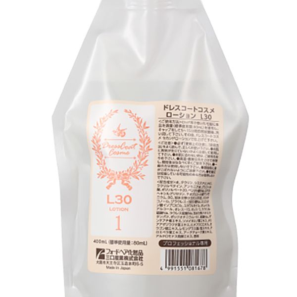 ロッドなどで巻いた毛髪に本品を適量(標準使用量:80ml)塗布し、キャップをして5〜15分自然放置後、洗い流す。その後、ドレスコートコスメセカンドローションで仕上げる。