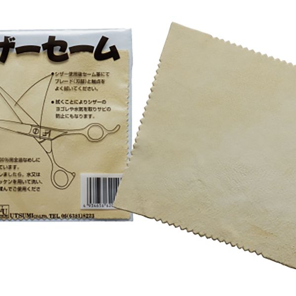 シザー使用後セーム革にてブレード(刃部)と触点をよく拭いてください。拭くことによりシザーのヨゴレや水気を取りサビの防止にもなります。このセーム革は100%完全油なめしにより繊維化されています。セーム革が汚れたら、水または微温湯で化粧セッケンを用いて洗い、陰干しの後軽く揉んでご使用ください。