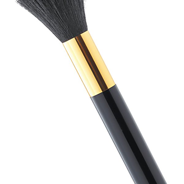 山羊毛の気持ちいいフェイス用毛払い。高級感あふれる黒い柄のフェイスブラシ。自立式だから使い勝手も良い。