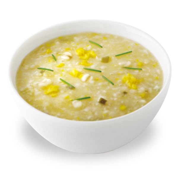 昆布ベースの出汁に本葛と生姜を加えてじっくり作った雑穀入りのお粥。なめらかなのどごしで、どんな時にもやさしい味噌風味。ふんわりたまごのほっとする味わい。レンジで2分!!