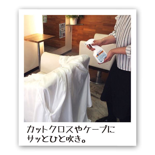 カットクロスなどを室内干しした時に残る生乾きのニオイや首廻りにつく汗、皮脂などのニオイ対策に使っていますが、しっかりと消臭と除菌が出来ていいと思います。来客中でも香りがの残らならない無香料スプレーなので、いつでも使えて便利!それに簡単に洗えない、カーテンやソファー、シューズなどにも使えて重宝しています!