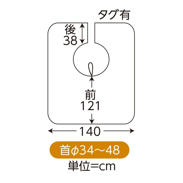 ●サイズ:前丈約121cm、後丈約38cm、首周り約34〜48cm