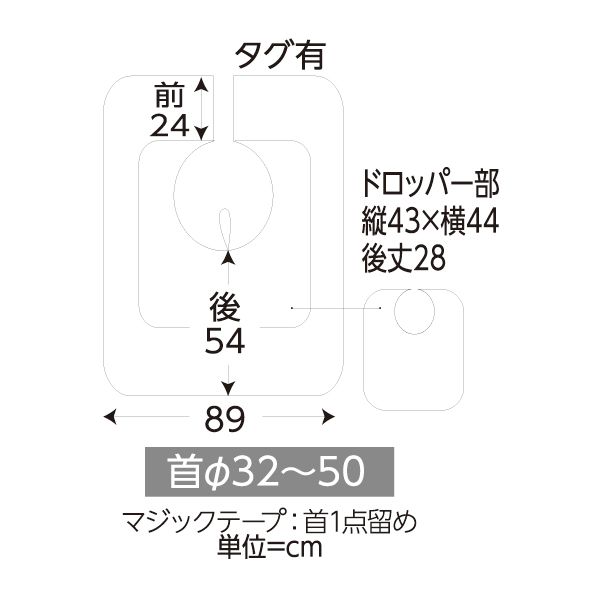 ●サイズ:前丈約24cm、後ろ丈約54cm、首周り約32〜50cm
