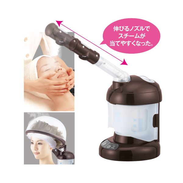 やさしいスチームで心地よくリラックス。伸びるノズルで、お肌にも髪にも当てやすい設計。