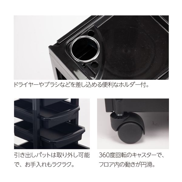 ●仕様:天板1段、引き出し式浅型パット5段、ドライヤーホルダー付