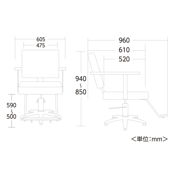 ●サイズ:幅605×奥行960×高さ850〜940mm