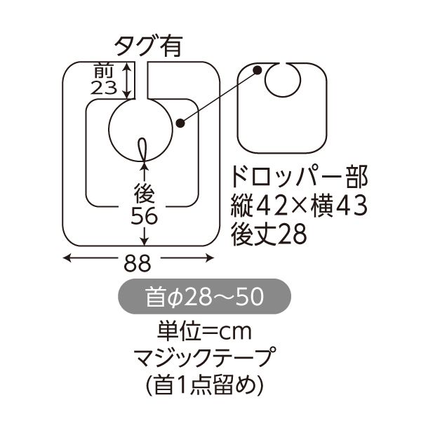 ●サイズ:前丈約23cm、後丈約56cm、幅約88cm、首周り約28〜50cm