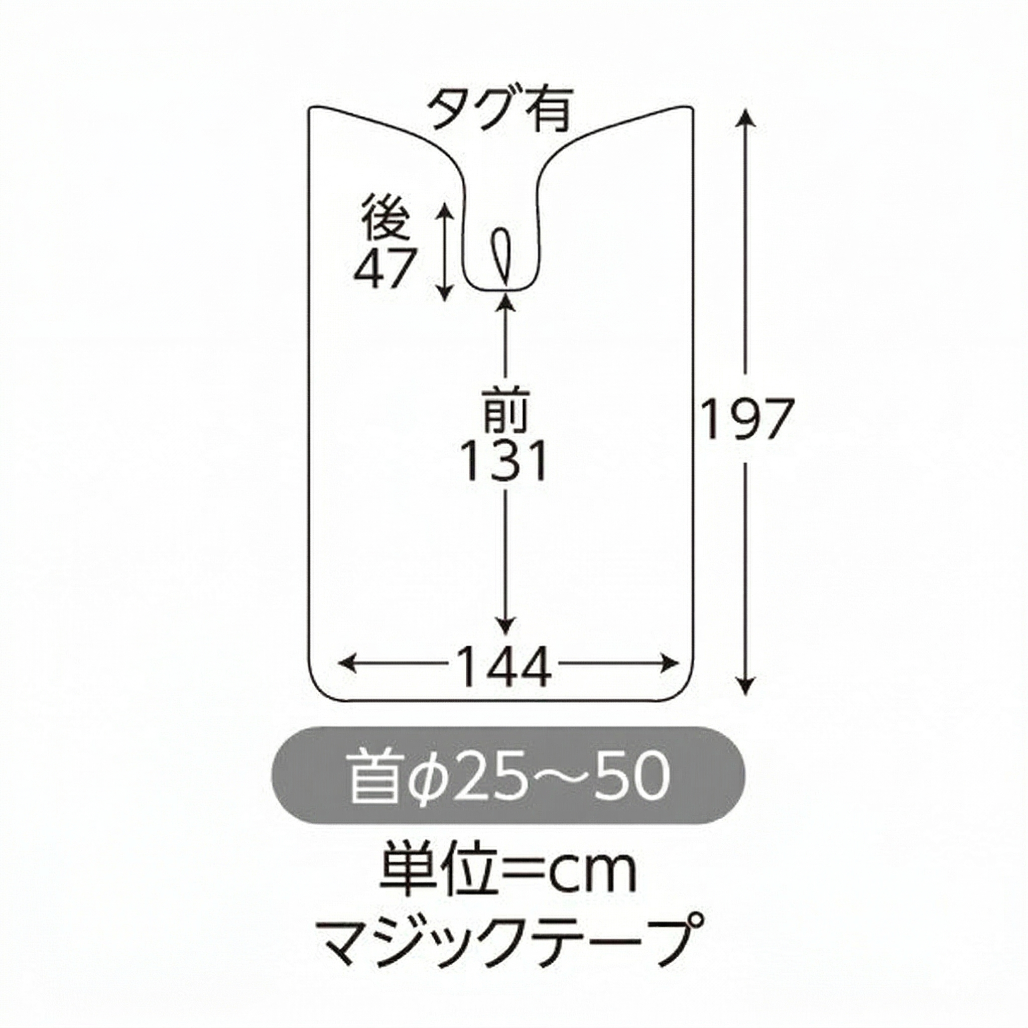 ●サイズ:前丈約131cm、後丈約47cm、首周り約25〜50cm