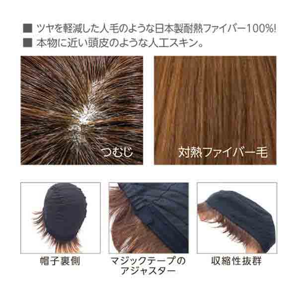 内側が帽子タイプのスッポリかぶれるフルウイッグ!装着 が簡単で幅広い年齢層や医療用にもオススメ。