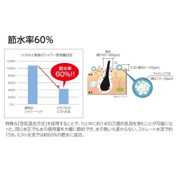 肌水分量8%UPに加え、節水率も60%と家計に優しい。