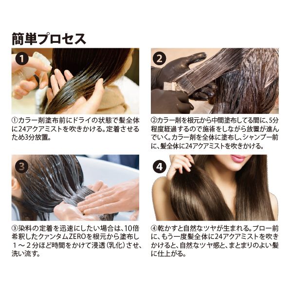パーマやカラーリングの際、薬剤をより早く深く髪に浸透させるアクアミスト。