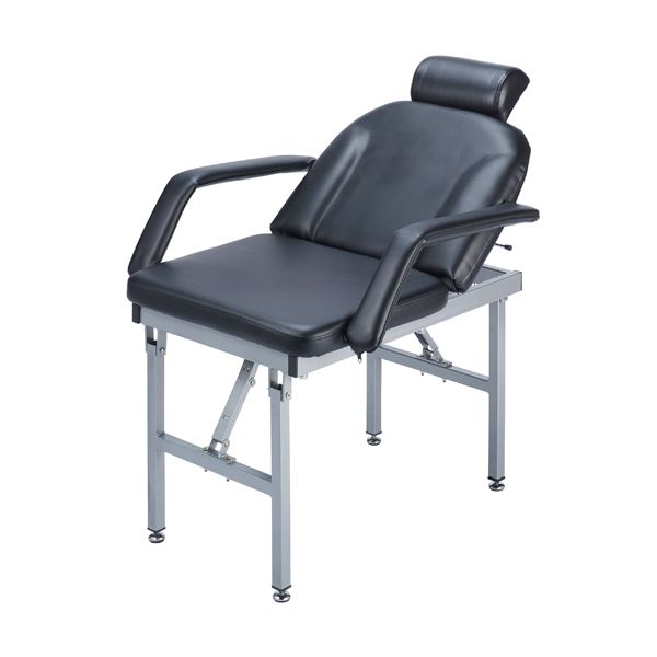 肘掛けはリクライニングに連動着脱式でリクライニング機構は無段階調整式。