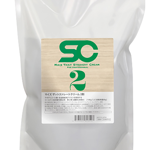 チオグリコール酸・高温整髪用アイロン使用のコールド二浴式縮毛矯正剤の2剤。今使っている1剤を変えることなくコストの見直しが検討できる。