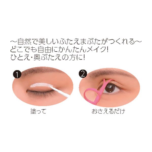 まぶたに塗って押さえるだけで、簡単にふたえまぶたがつくれる。