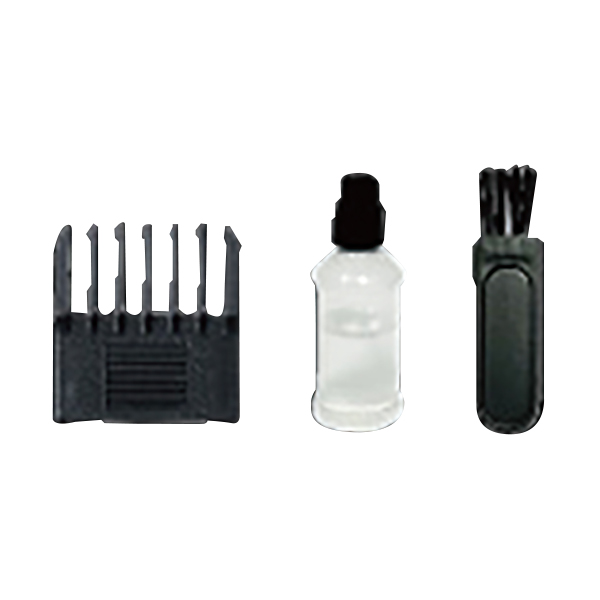 アタッチメントコーム、オイル、ブラシのお手入れセット付。