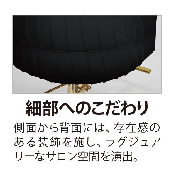 側面から背面には、存在感のある装飾を施し、ラグジュアリーなサロン空間を演出。