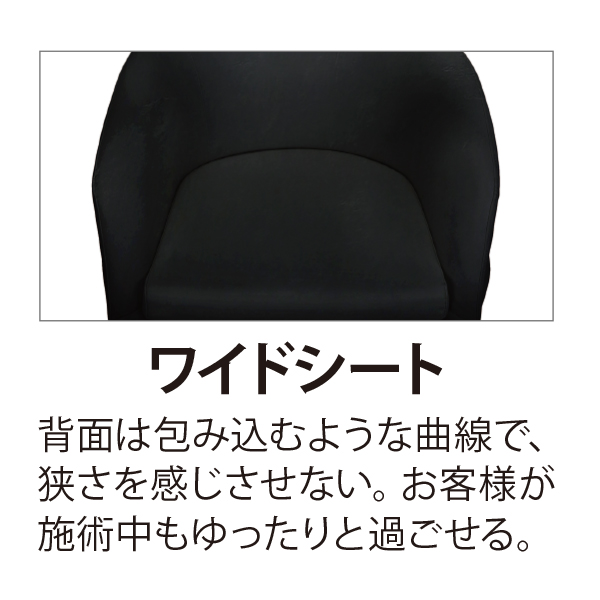 背面は包み込むような曲線で、狭さを感じさせない。お客様が施術中もゆったりと過ごせる。