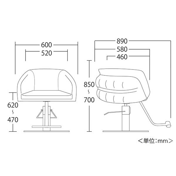●サイズ:幅600×奥行890×高さ700〜850mm