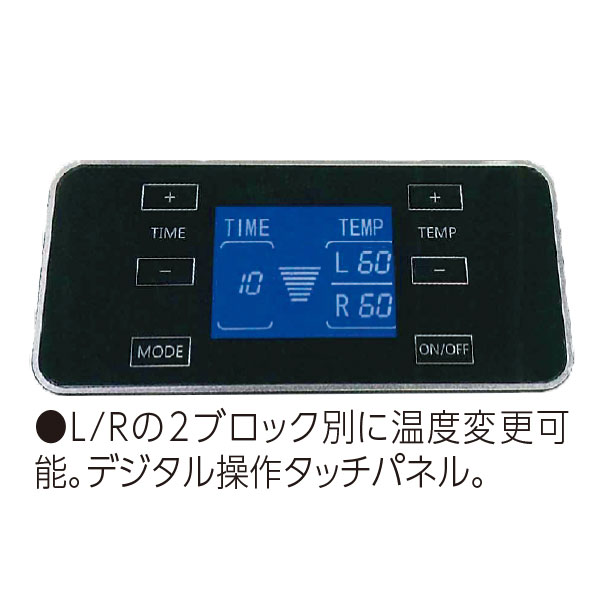 L/Rの2ブロック別に温度変更可能なタッチパネル式。デジタル操作もしやすい。