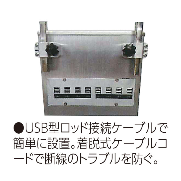 USB型ロッド接続ケーブルで設置も簡単。着脱式ケーブルコードで断線のトラブルを防ぐ。