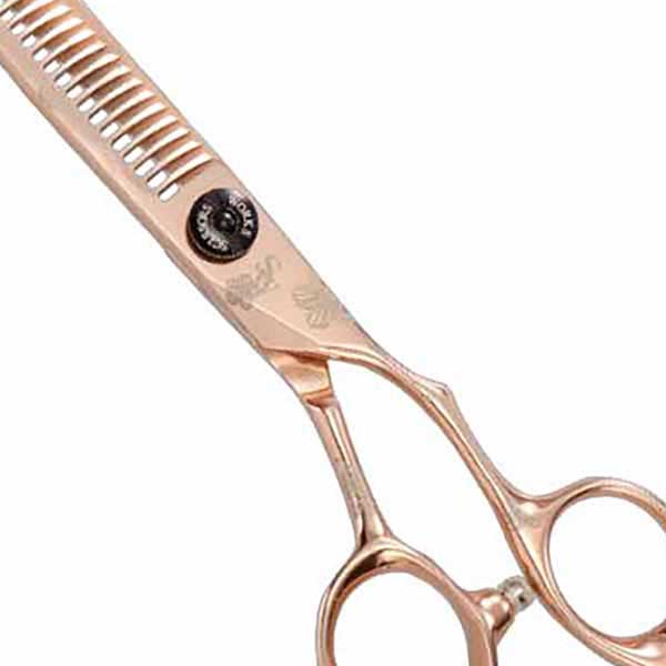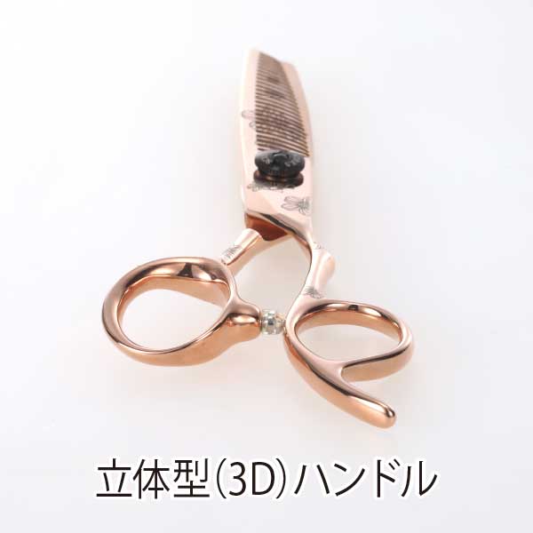 ピンクゴールドの本体にレーザーで花柄模様が入ったかわいらしいシザー。