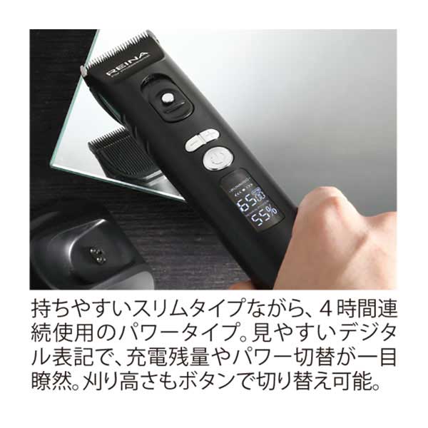 持ちやすいスリムタイプながら、3時間充電で4時間連続使用可能とパワーがあるバリカン。