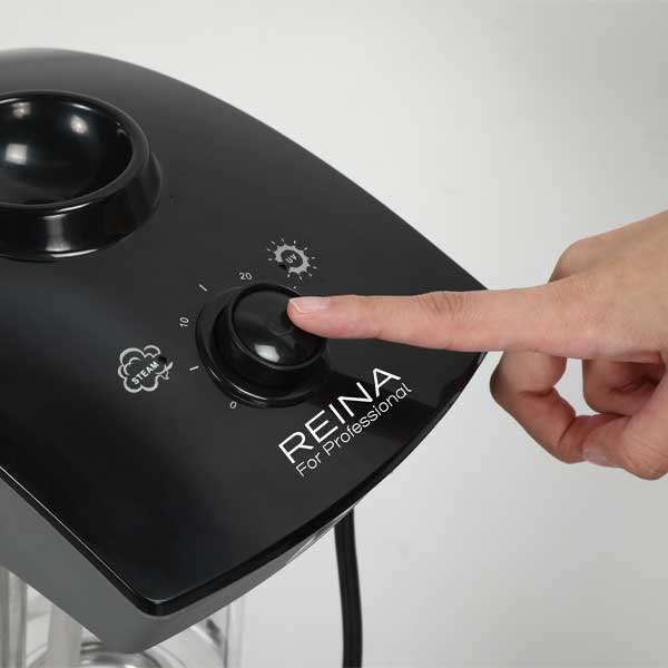 中央のボタンで電源のON/OFFや、回してタイマー設定など、操作が簡単なフェイシャルスチーマー。