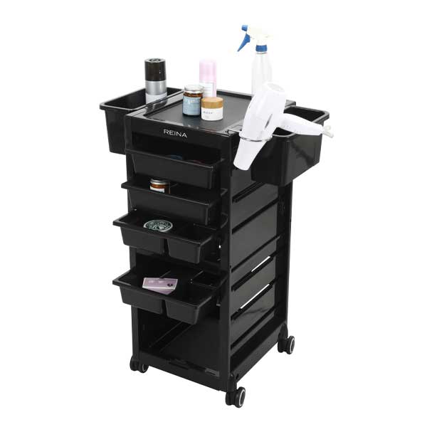 ●仕様:天板1段、引き出し式パッド2段、引き出し式仕切り付パッド2段、サイドポケット×2、ドライヤーホルダー付
