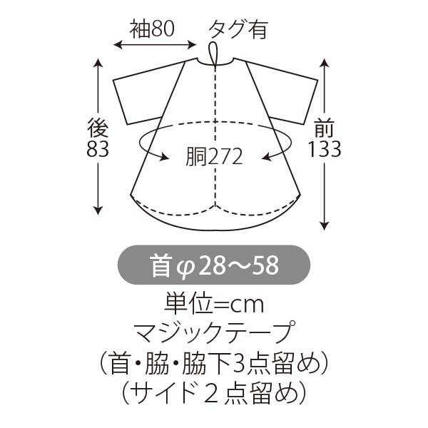●サイズ:前丈約133cm、後丈約83cm、首周り約28〜58cm
