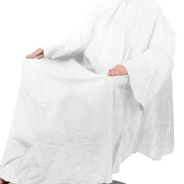 特別仕様の袖長タイプのカットクロス。袖口が深いので、カットした毛が袖口から入らず、お客様に不快な思いをさせない。