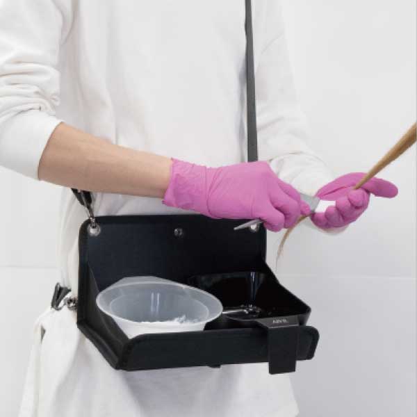 腰と肩の2箇所でベルトを固定するから、作業中もブレにくい。