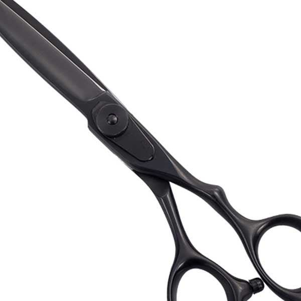 刃を開閉したときの抵抗を抑え、軽やかな操作感をもたらす。ウェットのブラントカット向きシザー。