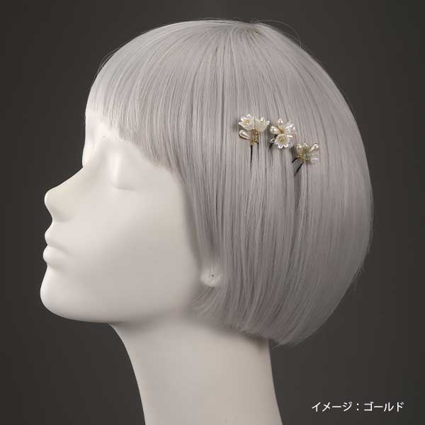 パールと小花のキュート飾り Uピン3点セット ゴールド
