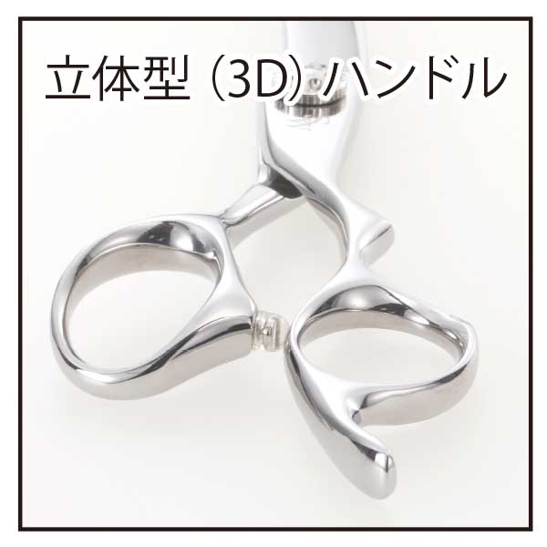 毛がすべりやすい形状で、ドライカットに適した設計のシザー。3Dハンドル採用。