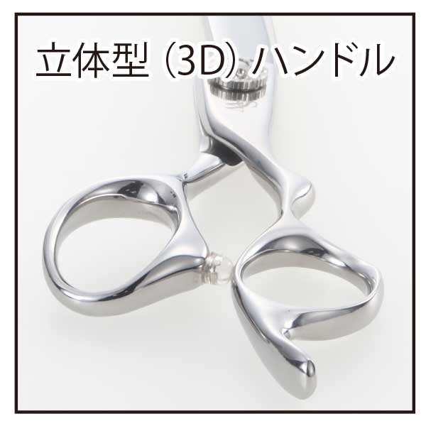 毛がすべりやすい形状で、ドライカットに適した設計のシザー。3Dハンドル採用。