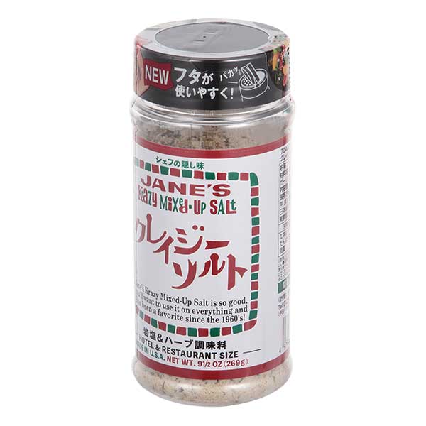 岩塩に6種のハーブ&スパイス(オニオン・ブラックペッパー・ガーリック・セロリシード・タイム・オレガノ)をブレンドした調味料。