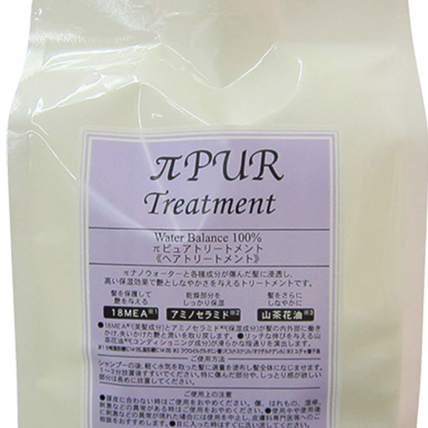 πピュアトリートメントは、ダメージヘアを補修・保護し、しっとり潤うなめらかな髪に仕上げるトリートメント。低刺激処方で、18MEA、アミノセラミド、山茶花油配合。