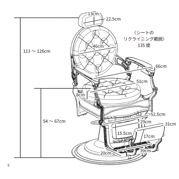 重厚感と高級感を兼ね備えた、クラシックスタイルのバーバーチェア。