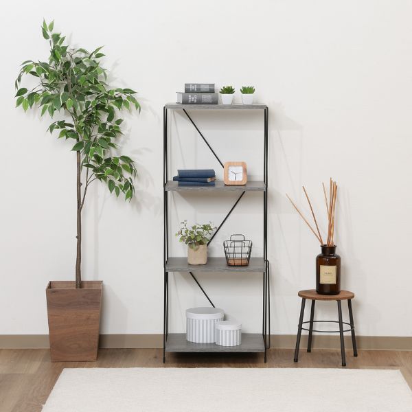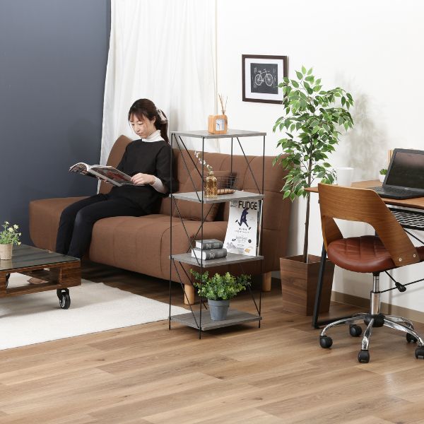 木目調の棚板とワイヤーフレームを組み合わせたスタイリッシュデザインのラック。工具不要で簡単組立式。