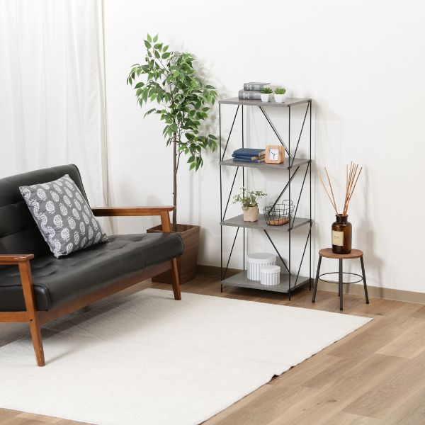 ●材質:構造部材(フレーム)/金属(鋼)、表面加工(フレーム)/エポキシ樹脂塗装、表面材(棚板)/プリント紙化粧パーティクルボード